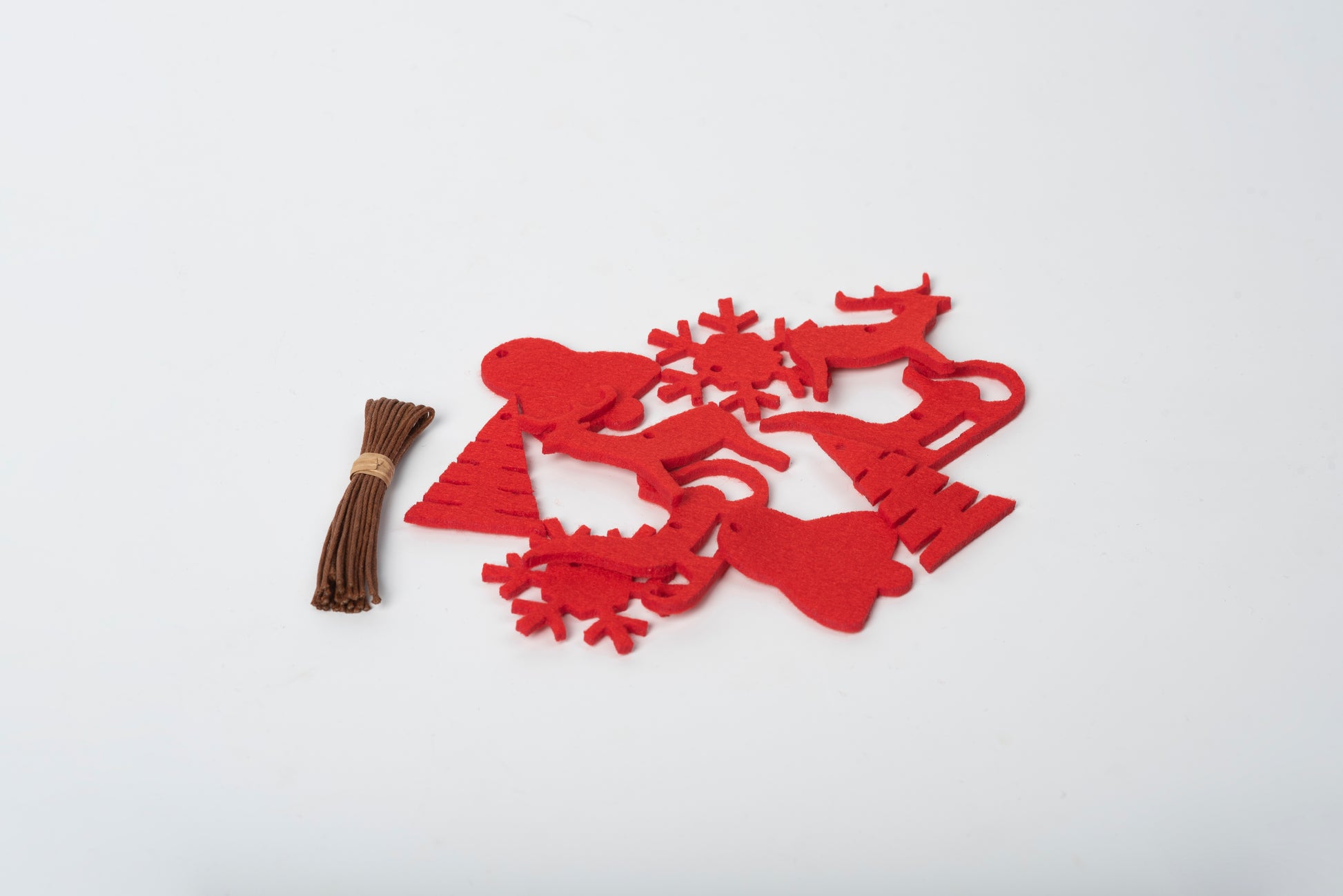 Il set contiene 10 ornamenti in feltro in 5 popolari motivi natalizi. Gli ornamenti sono disponibili in tre diverse dimensioni. Nel set sono compresi anche i cordoncini per appendere le decorazioni.