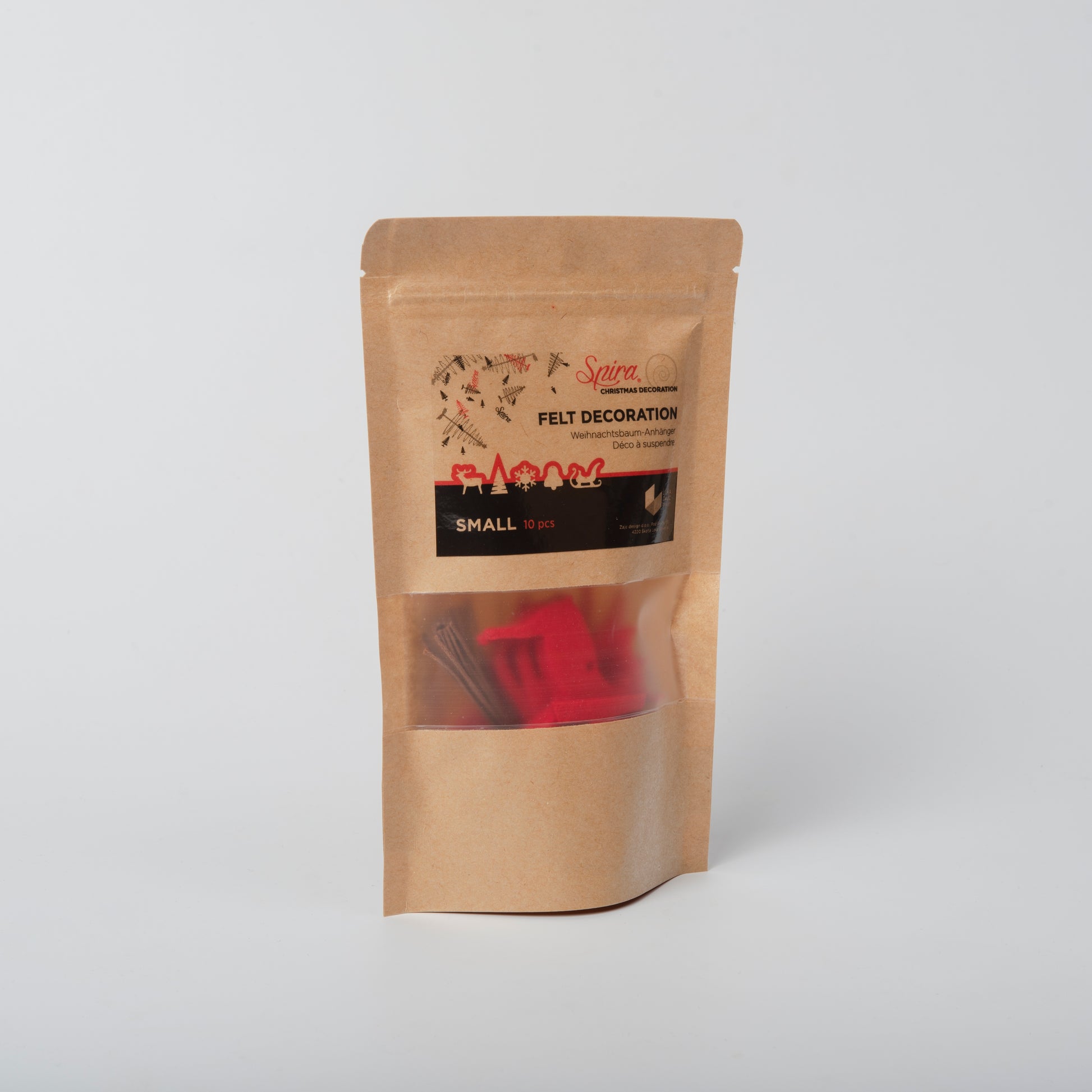 Un set di 10 decorazioni di Capodanno in feltro rosso creerà la perfetta atmosfera festosa. Con loro puoi decorare l'albero di Natale Spira o dare libero sfogo alla tua fantasia e decorare quello che vuoi.