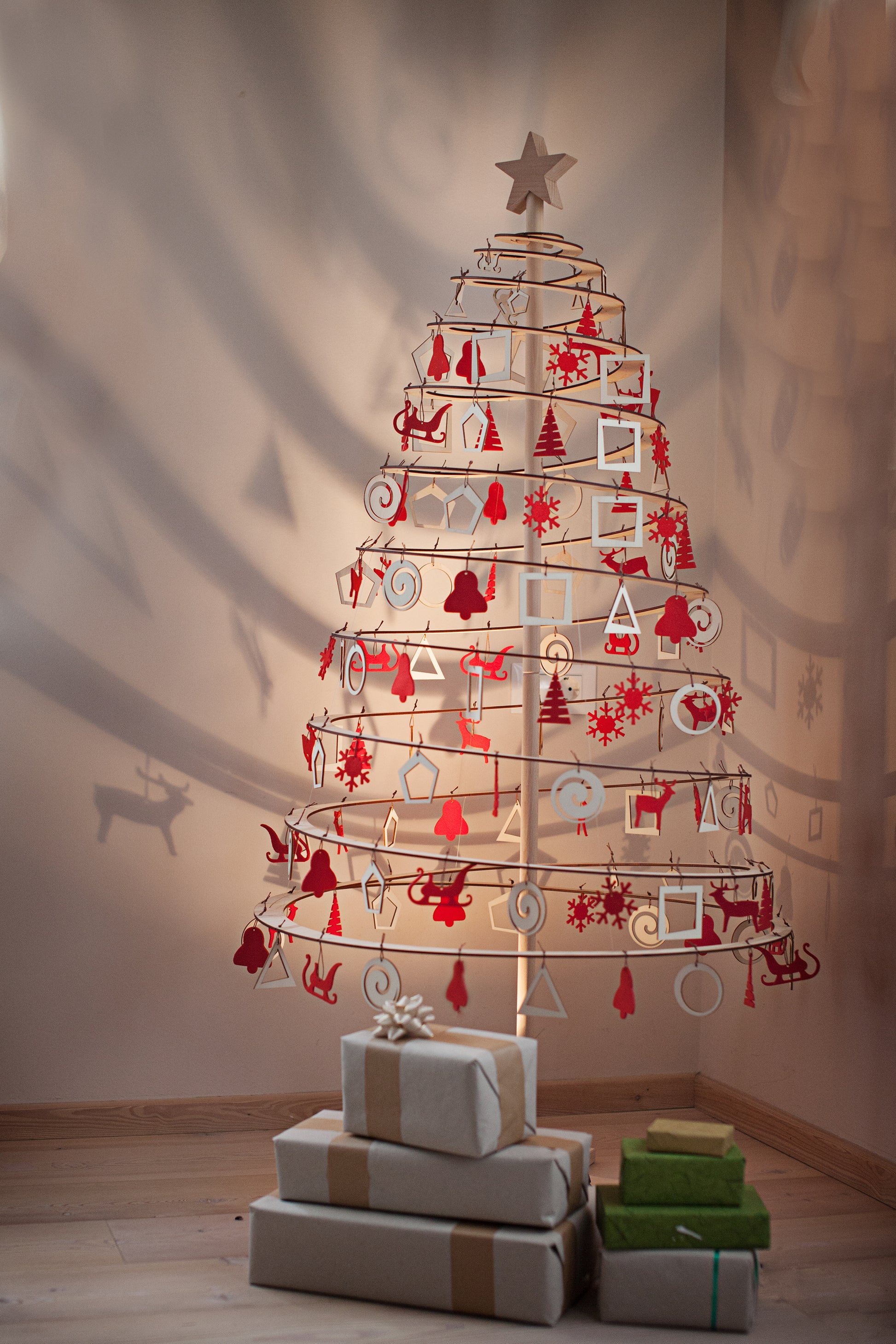 L'unico set di decorazioni di cui hai bisogno. La miscela di ornamenti in feltro e legno è adatta per alberi di Natale Spira di tutte le dimensioni. Materiali naturali dalle forme dinamiche porteranno calore e gioia alla tua casa e il colore rosso creerà una vivace atmosfera festosa.