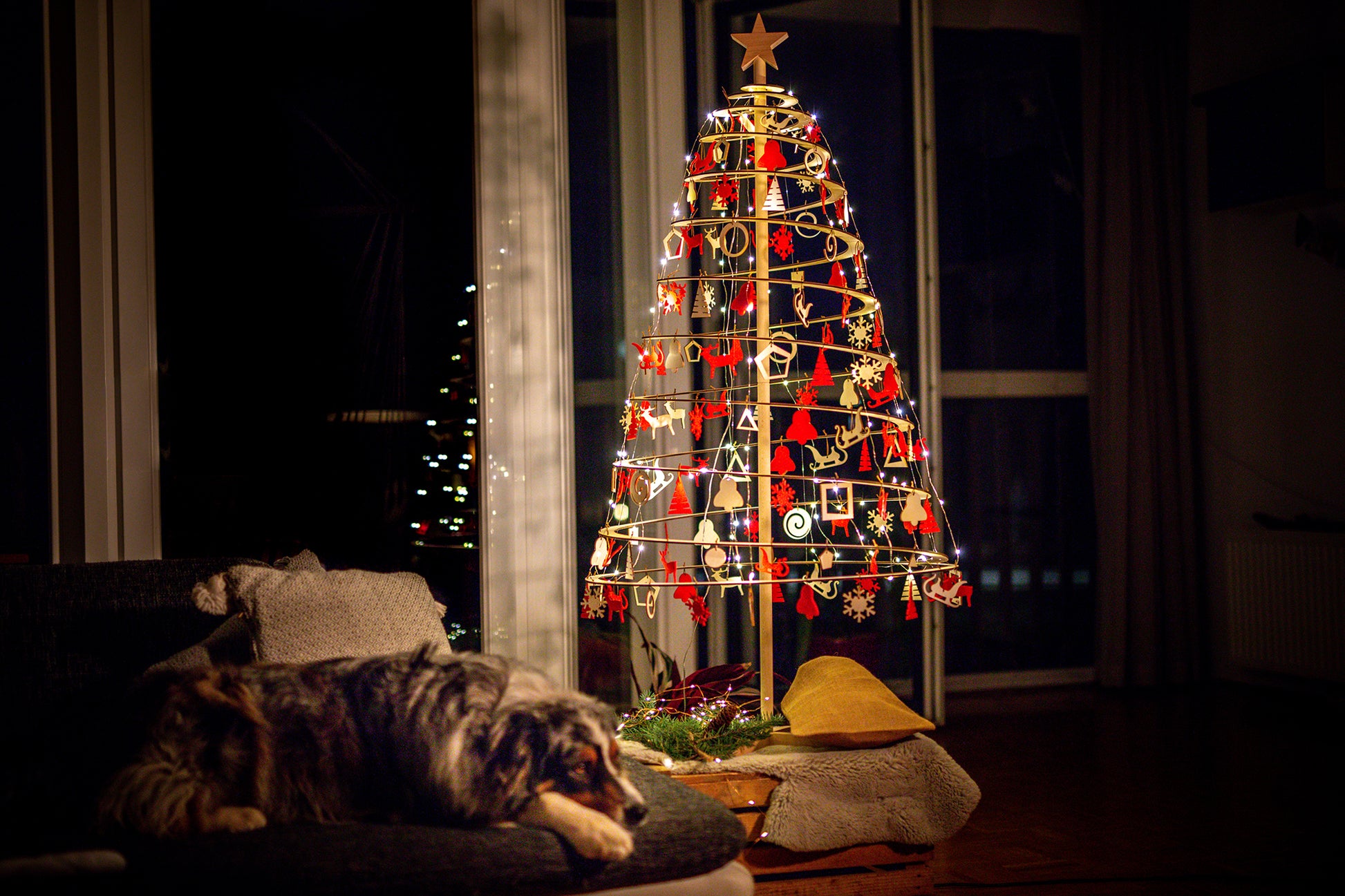 L'albero ecologico Spira è realizzato in compensato tagliato al laser e un supporto in legno. L'albero in legno può essere montato e smontato molto rapidamente. Permette inoltre un facile stoccaggio in una scatola alta 5 cm.